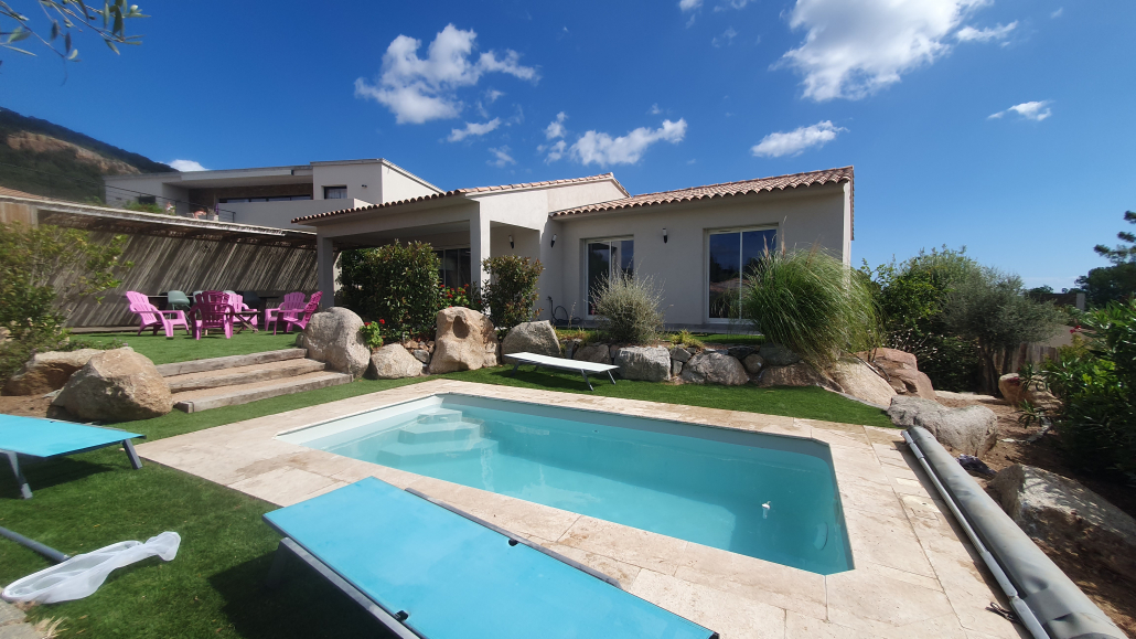 Casa Vigna est une villa neuve spacieuse pour 6 personnes entièrement climatisée de 110 m² sur 700m² de terrain paysagé. Elle dispose d’une piscine chauffée a 26° (fermée du 01/11 au 31/03). La villa possède plusieurs terrasses ombragées ou ensoleillées pour se détendre.